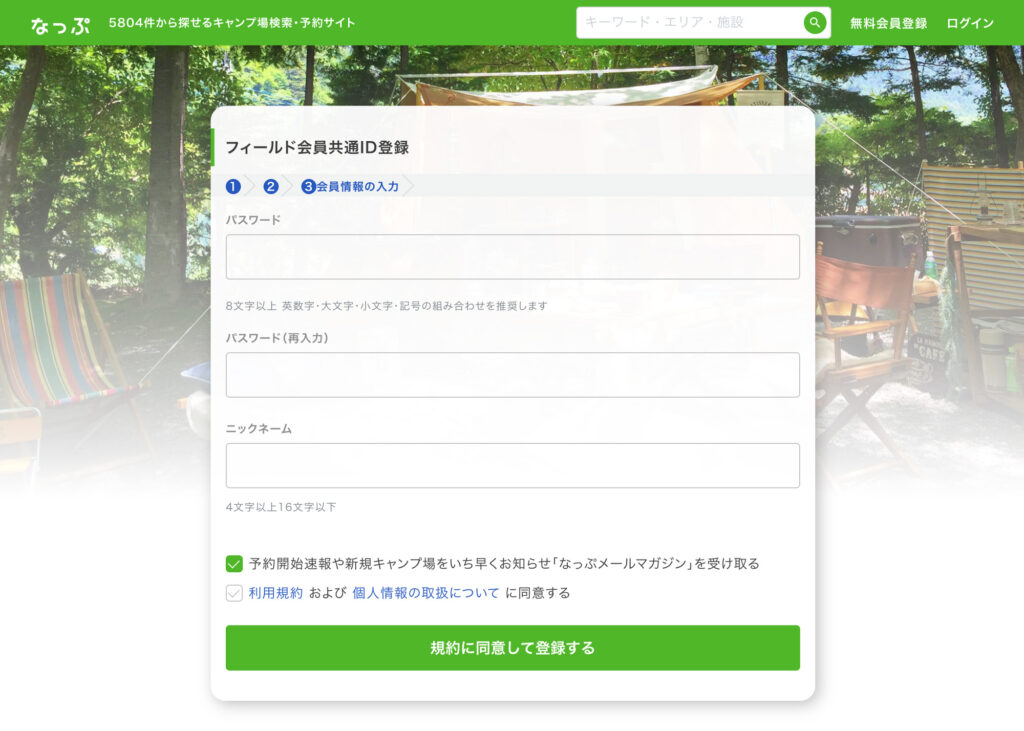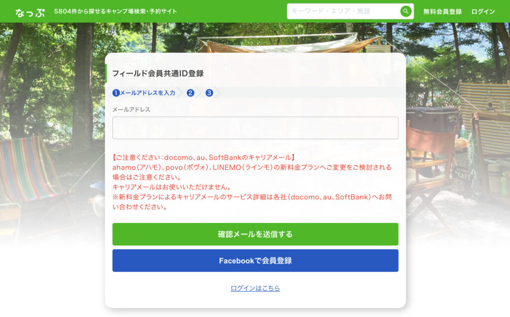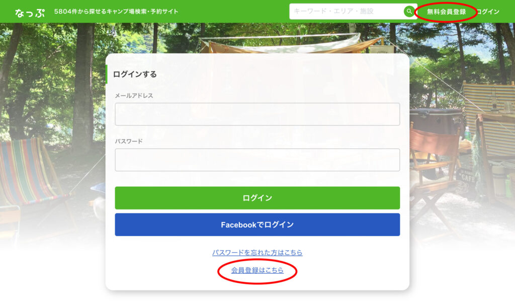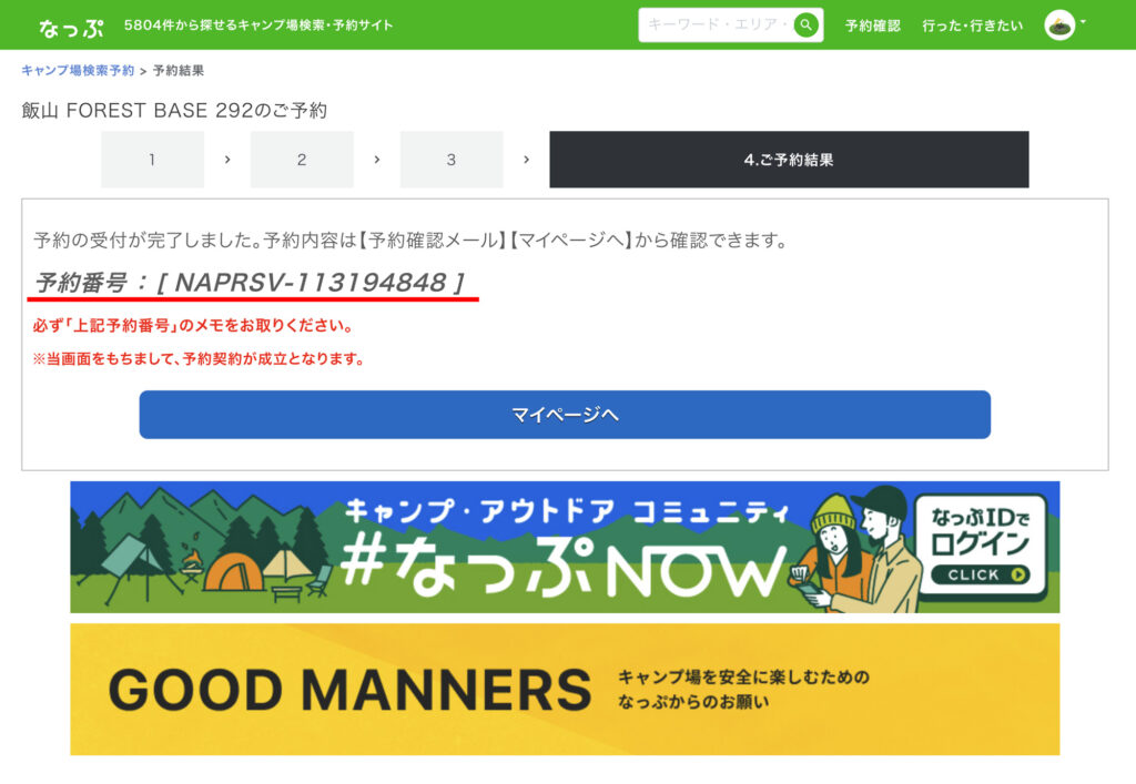 キャンプ場予約サイト『なっぷ』でのお申し込み方法