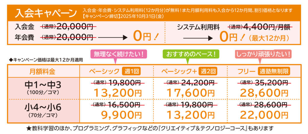 このうち教科学習コースでは2週間の無料体験が可能です。