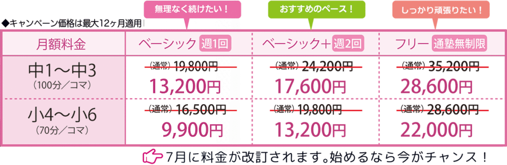 英数国社理すべての教科を学んでいただけます。実際に塾に通っていただく場合、どの教科をいくつ学んでも料金は変わりません。